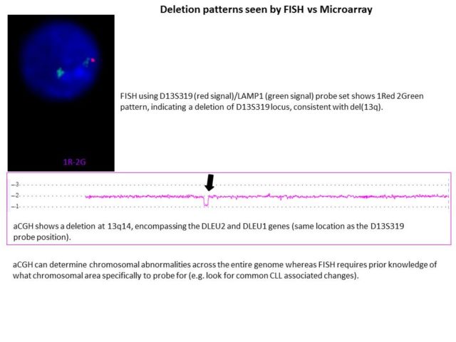 In many patients, CLL behaves very indolently, not requiring treatment. In others, CLL can become symptomatic requiring medical intervention. After a diagnosis of CLL has been made by flow cytometry, the laboratory plays a key role in prognosis and therapeutic decision making. Select a laboratory test most applicable to CLL prognostication: