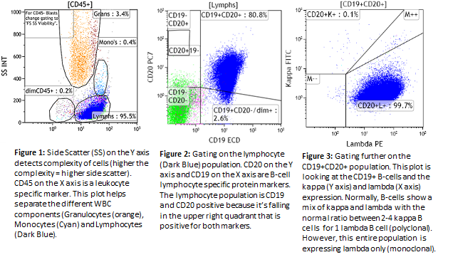 The manual differential shows lymphocytes are markedly increased (50.6 x 10E9/L, normal reference range 1.0-4.0 x 10E9/L). This patient's high lymphocyte count is suggestive of a lymphoproliferative disorder. To further classify this disease what is the most reasonable next step?